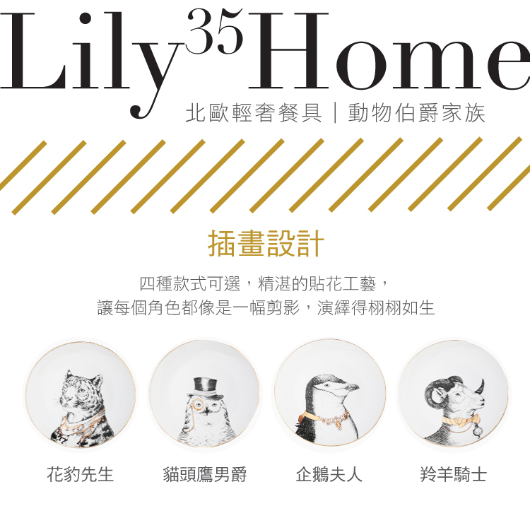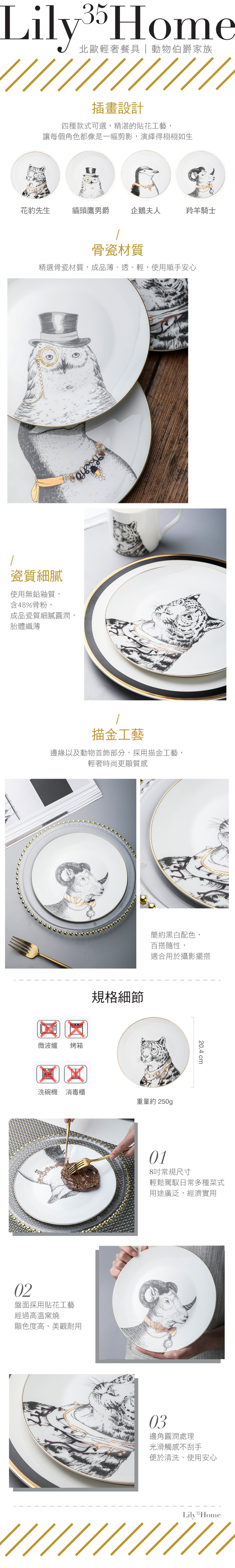 【Lily35 Home】北歐輕奢餐具|動物伯爵家族|骨瓷餐盤(8吋)#簡約設計 #下午茶 #甜點盤 #首飾盤 #不可微波 #無鉛釉