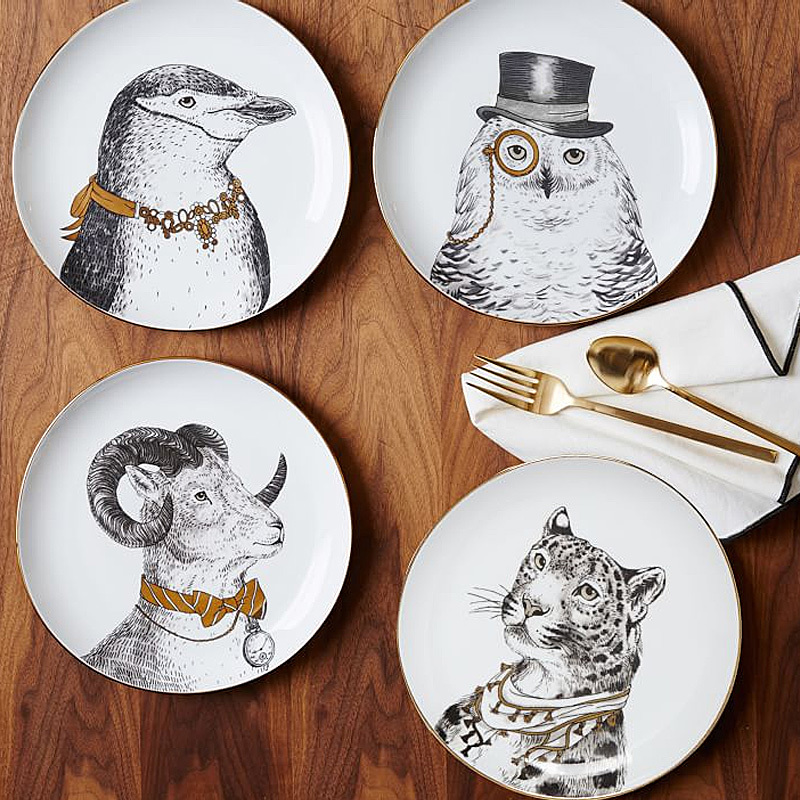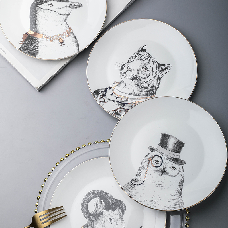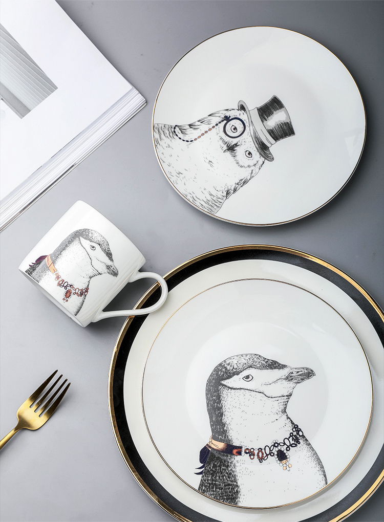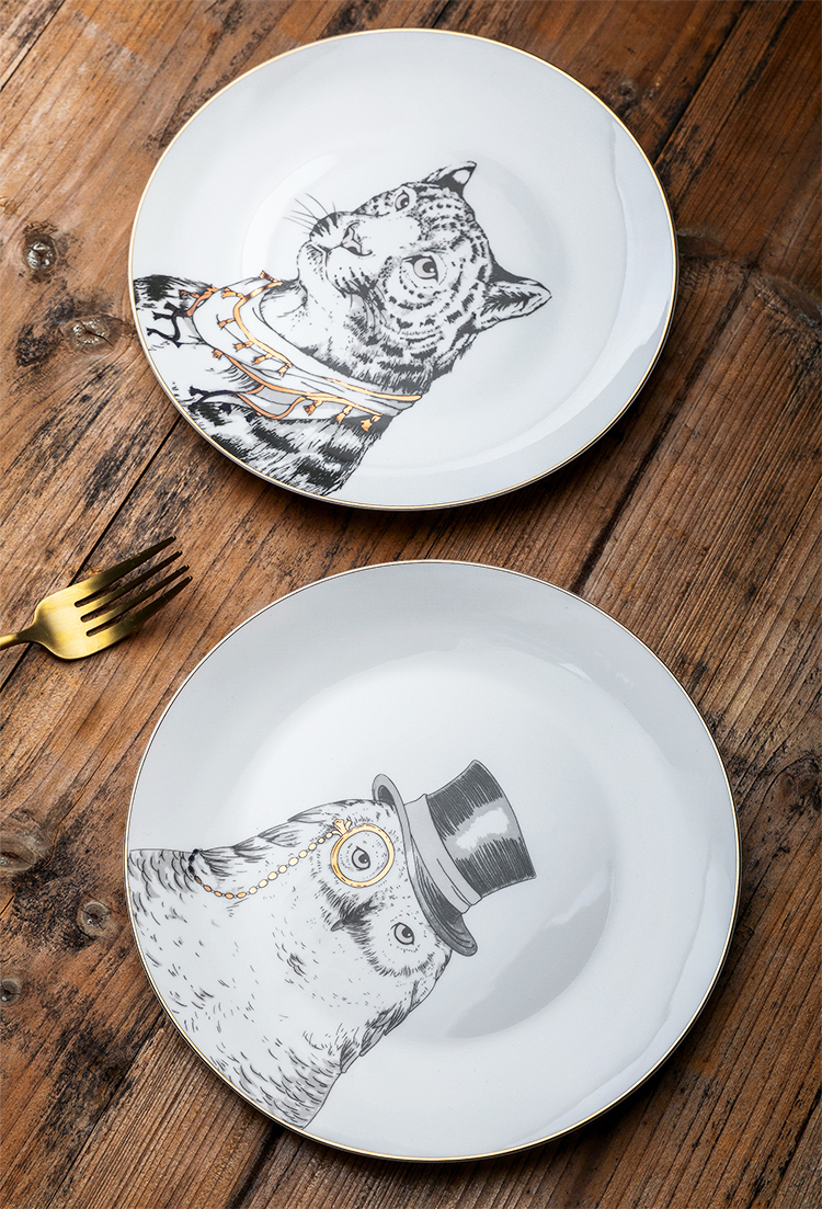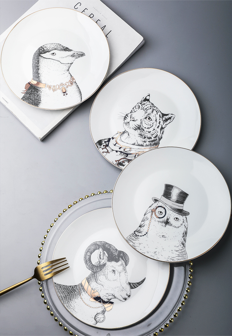 餐盤邊緣以及動物首飾採用描金工藝,輕奢時尚更顯質感。
