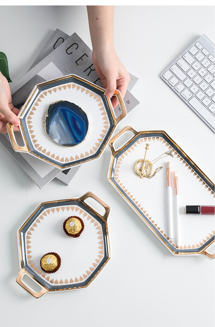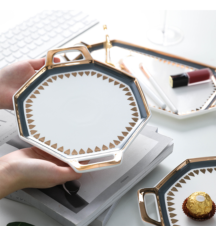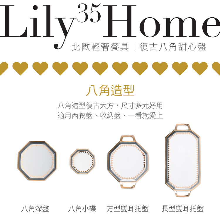 【Lily35 Home】北歐輕奢餐具|復古八角甜心盤 #金邊愛心 #首飾盤 #甜點盤 #不可微波 #釉上彩