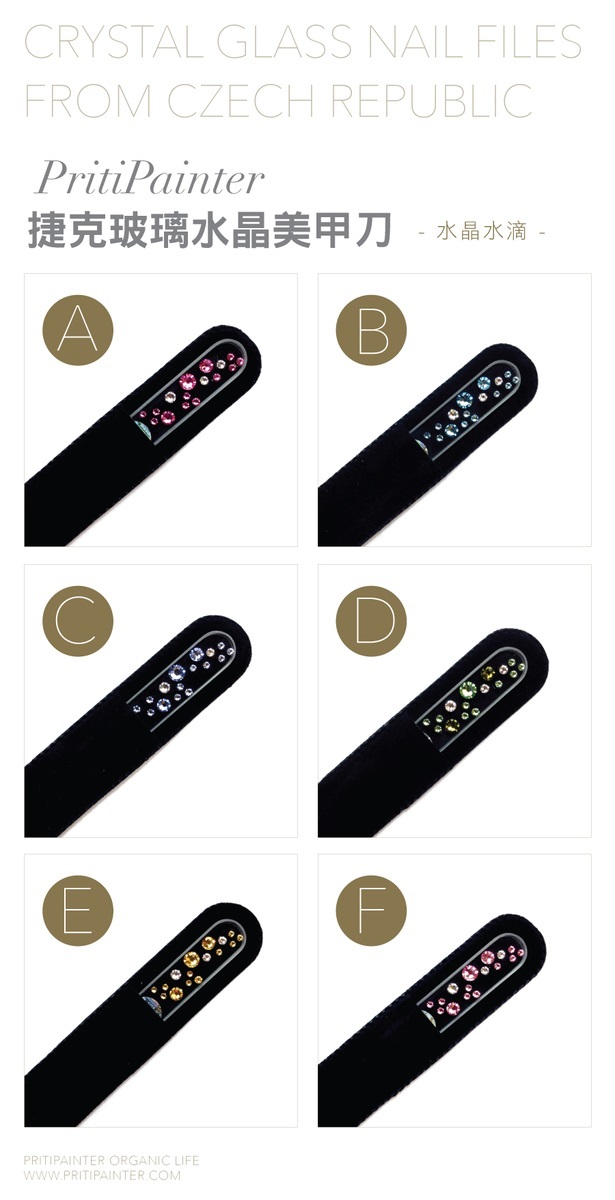 2. 捷克玻璃水晶美甲刀,為高溫鋼塑處理的強化玻璃,堅固並且耐用持久不易碎裂。本體輕薄,輕敲聲音清亮,而一般玻璃銼刀較厚,聲音木訥包覆。