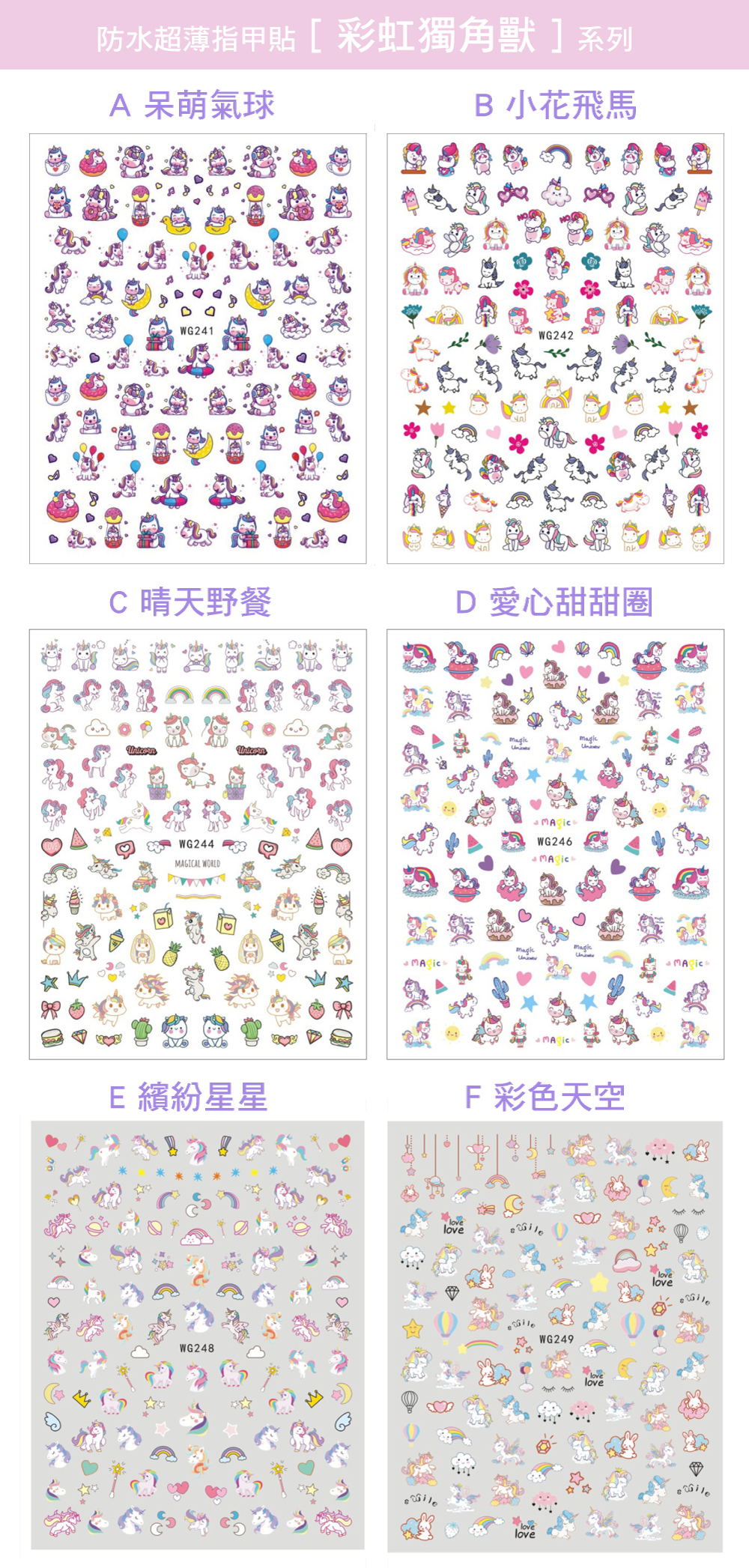 彩虹獨角獸系列|C 晴天野餐|防水超薄背膠指甲貼 | 美甲貼紙 卡通環保無毒無味 #生日禮物 #美甲組合 #韓系指甲貼