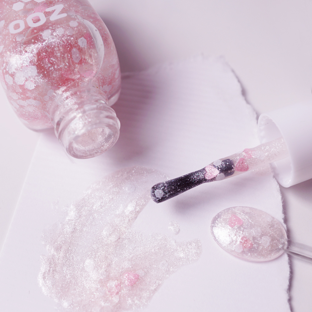 有著珍珠銀白光澤,跟細細銀粉閃耀的底色。小手隨著角度有不同光澤的變化。
