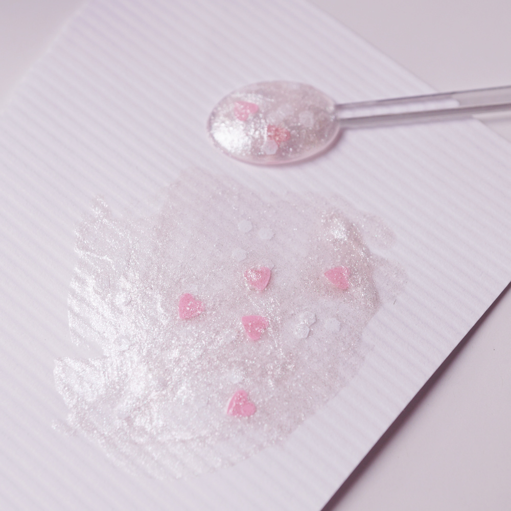 驚喜的雪花白點鑽及粉紅愛心亮片點綴,