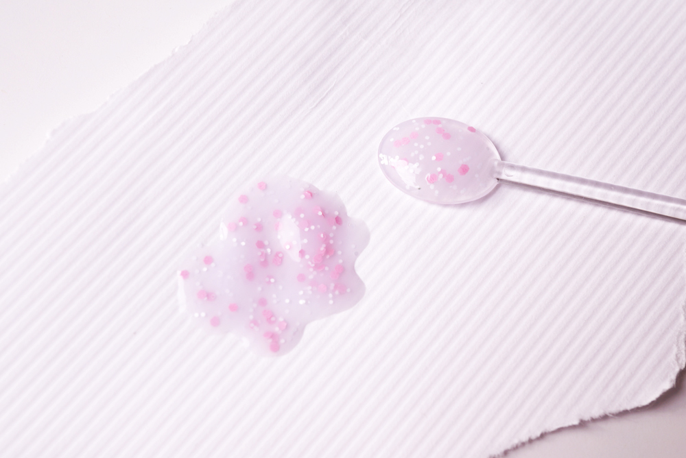2.側面顏色對應此瓶顏色,還有代表亮片的圖案點綴,有圓點也有線條,代表亮片的繽紛顏色。