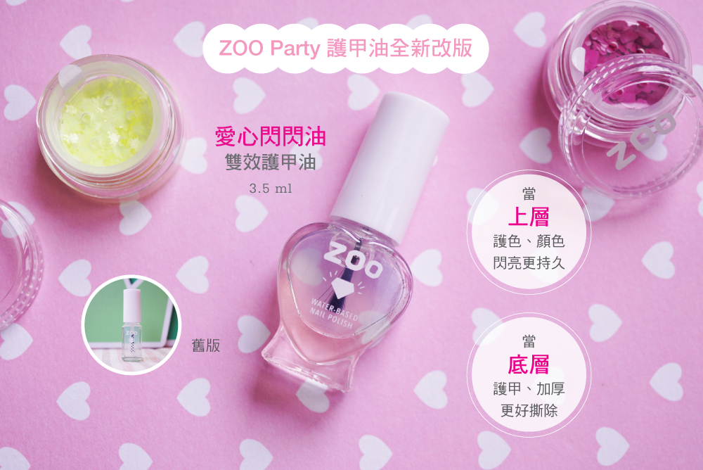 1. 護甲油一瓶:ZOO 510 愛心閃閃油(容量:3.5ml)